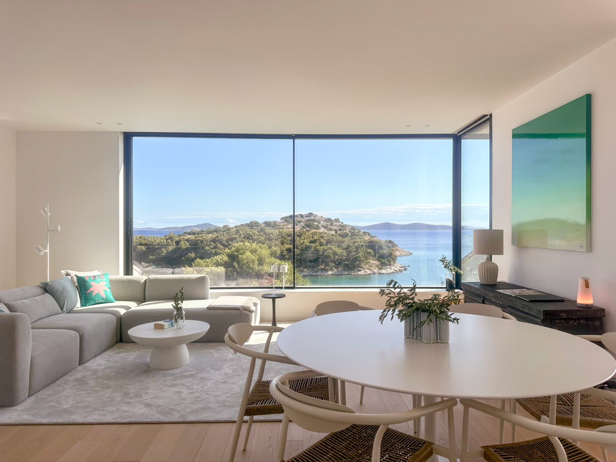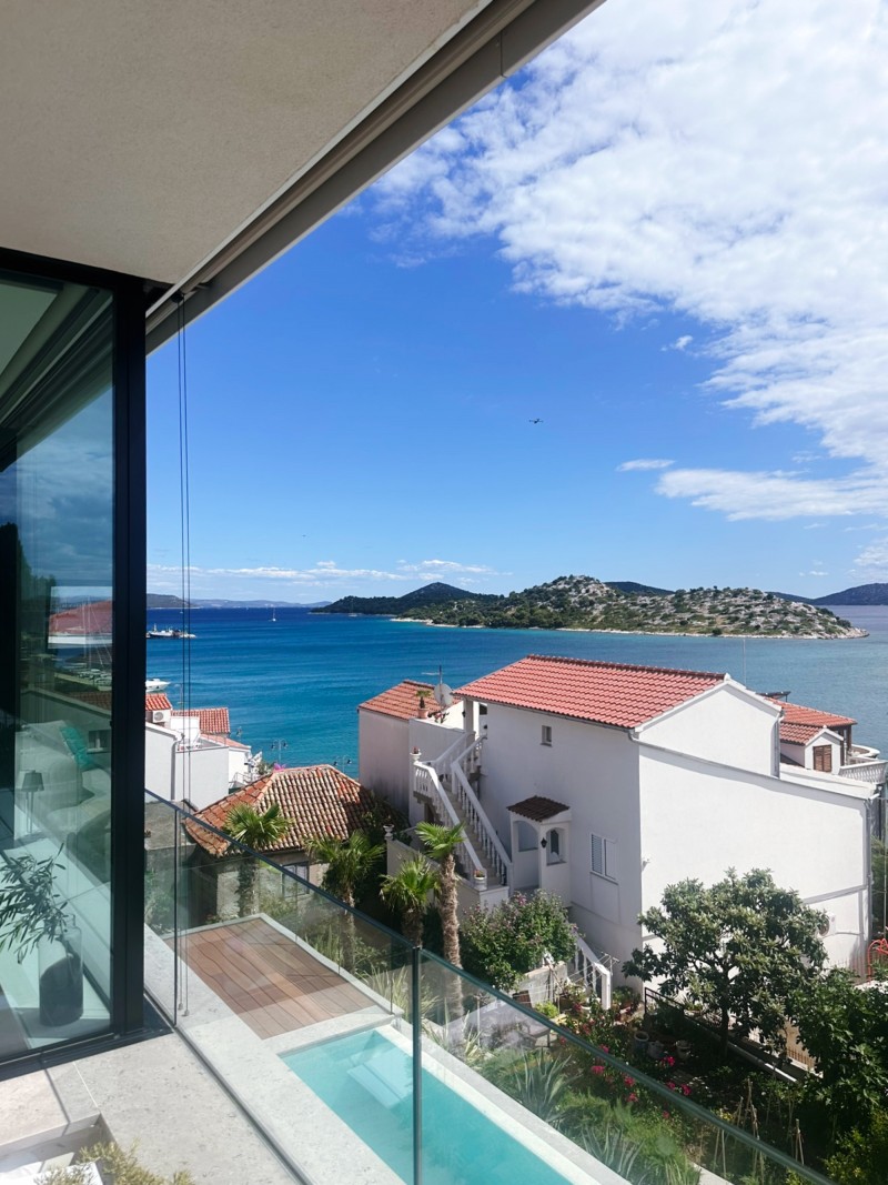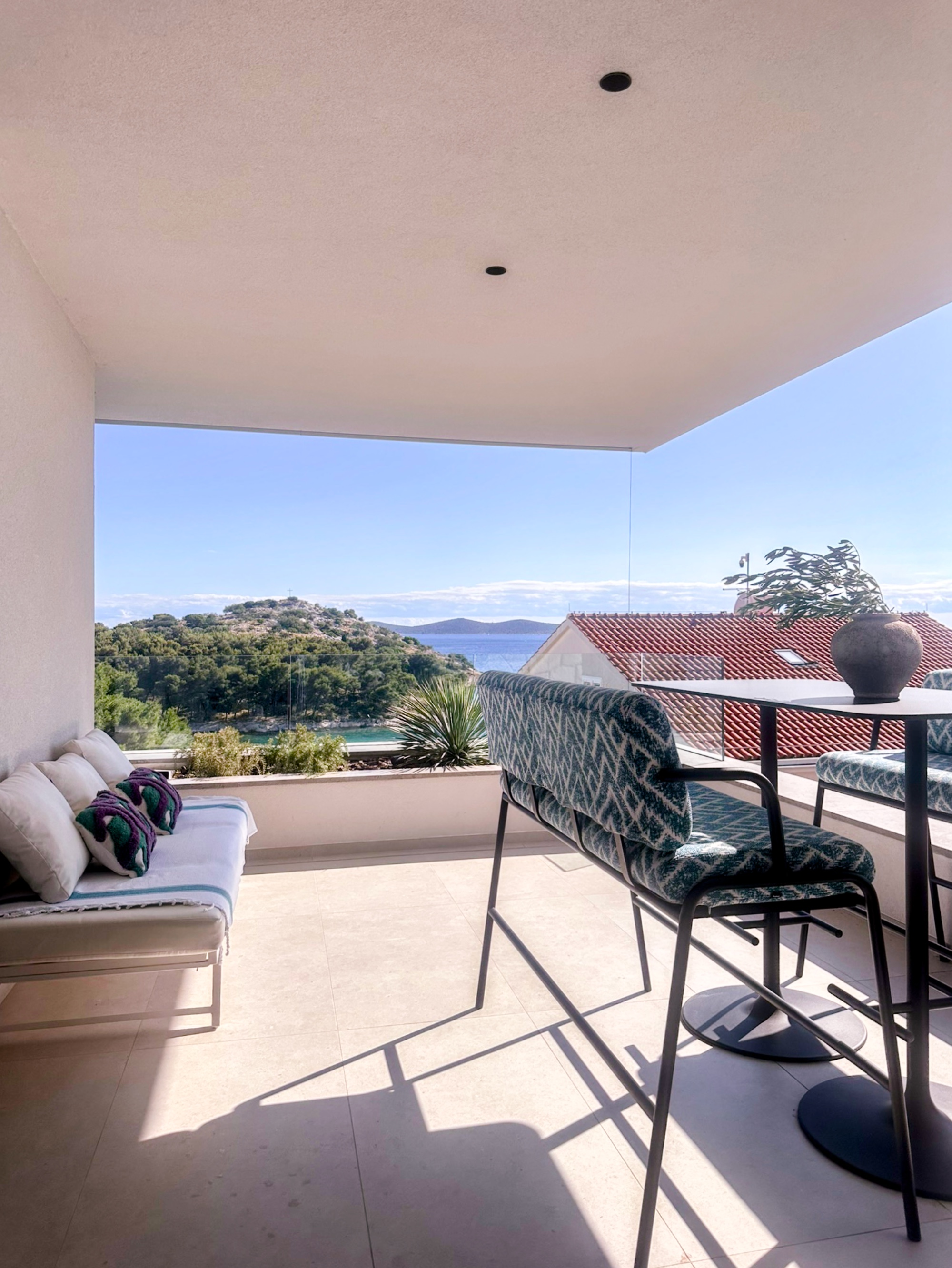 Der direkte Blick auf's Meer in Tribunj vereint sich mit sanften Tönen zu einer ruhigen Atmosphäre.
